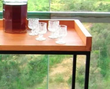 A combinação dos materiais garante segurança para acomodar suas bebidas, taças e acessórios com total confiança — sem abrir mão da estética rústica sofisticada.