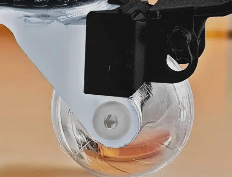 Equipado com rodinhas de silicone macio, que deslizam com leveza e não riscam o piso. Garantem movimentação silenciosa e segura, mesmo em superfícies delicadas como madeira, vinílico ou porcelanato.