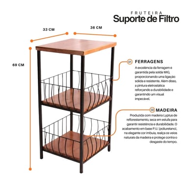 O Suporte para Filtro com Fruteira da Minas Rústico foi criado para quem deseja unir organização, beleza e aproveitamento inteligente do espaço.